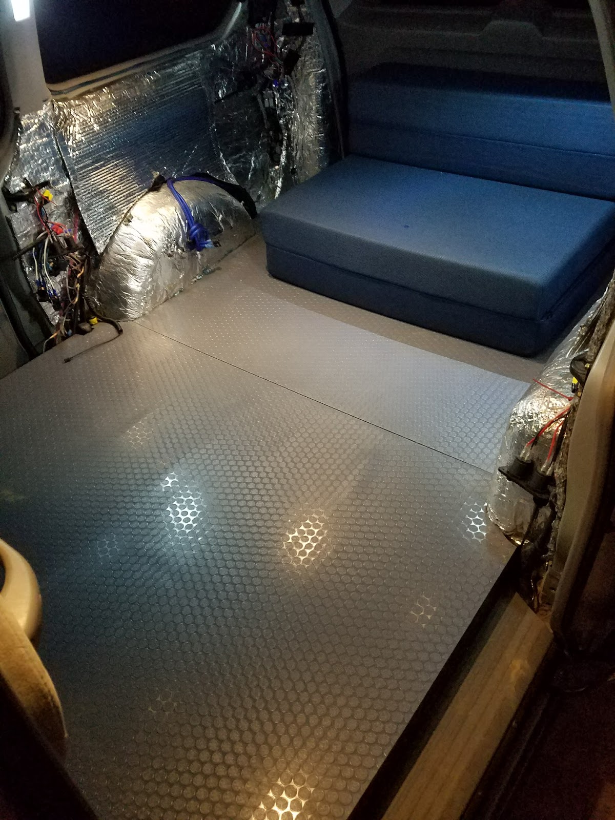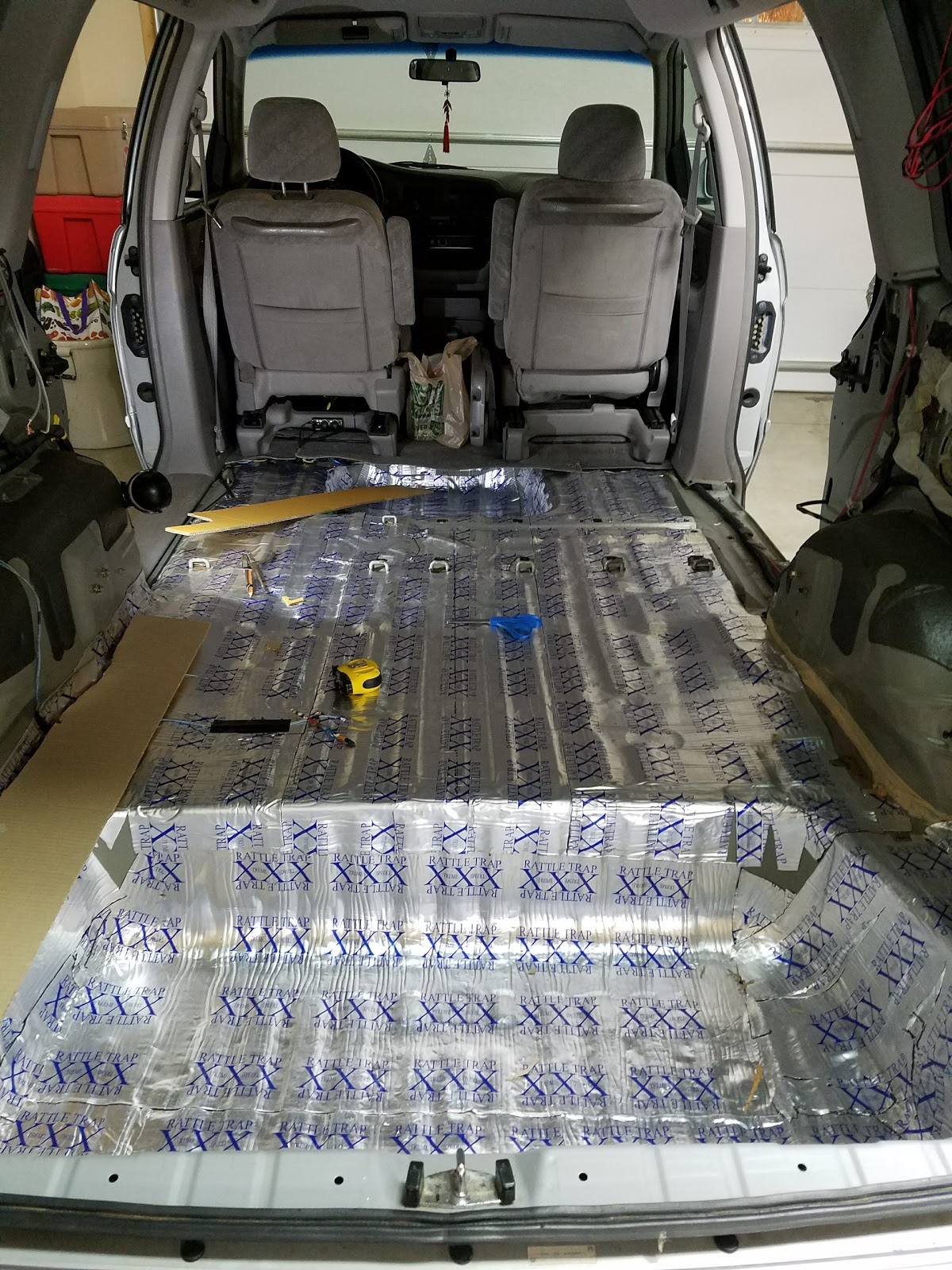 My next project was to cover the rear metal with sound deadening material called RattleTrap. Once this was put down we could start the floor.