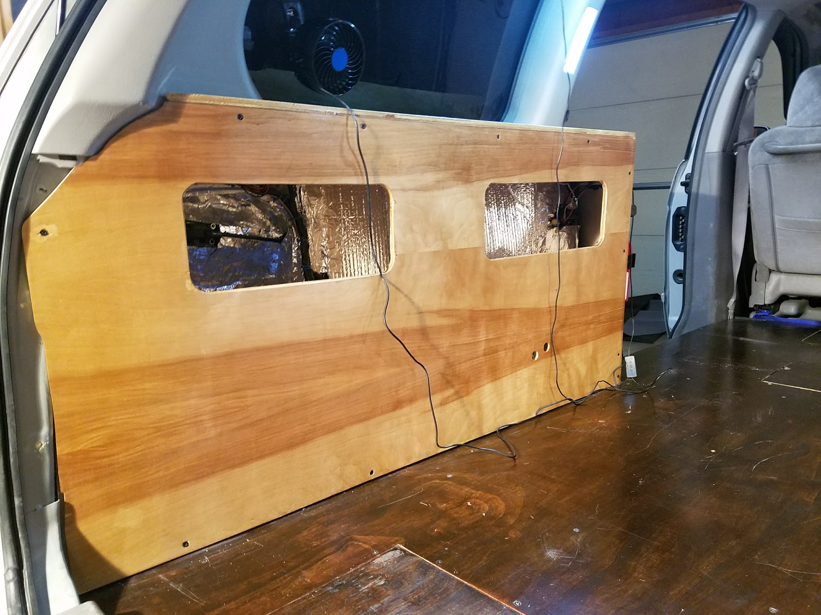 2. Cool design–love the cubby cabinets, the versatility of the bed/couch, and the over all clean look! Most mini-van builds look claustrophobic, but yours doesn’t, at all. Please be really, really careful both with using that Mr. Buddy heater and with cooking inside. (Do you have both a Carbon Monoxide detector and a low-oxygen sensor? Would hate to see your health get dented…or worse. Also a really good idea to put that propane tank in an airtight box that vents to the outside, because it is normal for the regulator to release propane with changes in temperature and elevation. If enough gets released, it can cause an explosion with a spark from your electrical system or when you light the stove. Hope this isn’t too much unsolicited advice–I just want you to be able to keep enjoying your awesome van in good health! I learned one of these things–the one about the CO detector–the hard way. I was found passed out, nearly dead, and although I recovered a lot, it has affected my health in ways that persist a decade later. Just hoping to help anyone else from going through that.:-)