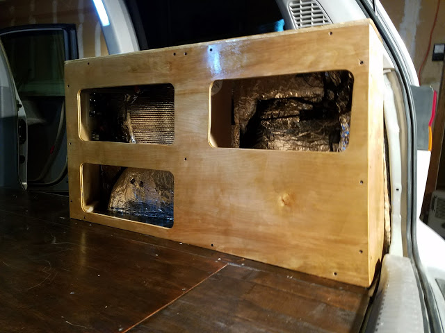 Small cabinet done now time to work on the large cabinet. These pieces were even more difficult to cut and shape into the sides of the van than the floor was.