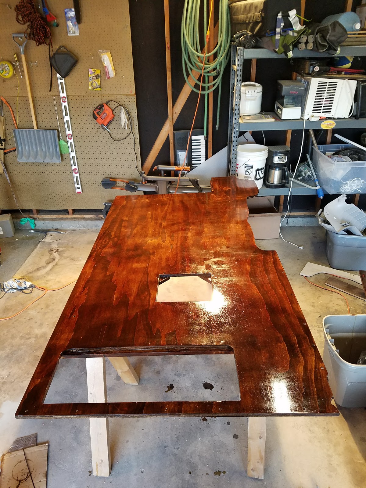 Adding a nice dark stain to the floor. Out of all my projects staining the floor was the most stressful due to me not really knowing what I was doing.