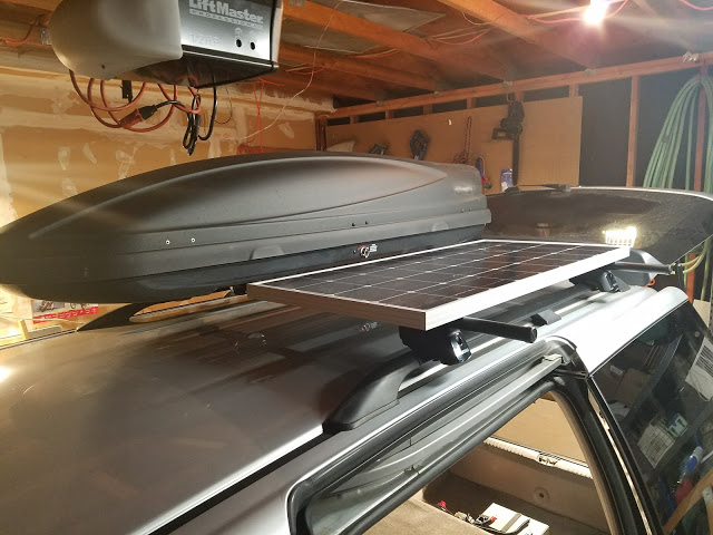 Renogy 100 watt Renogy Solar Panel installed on the roof rack and my Thule Cargo Carrier I got off Craigslist.