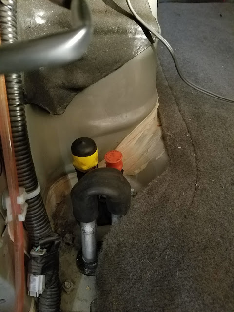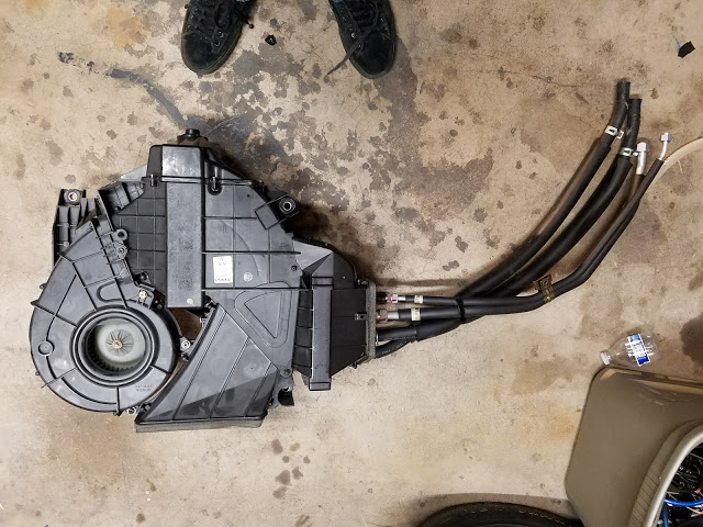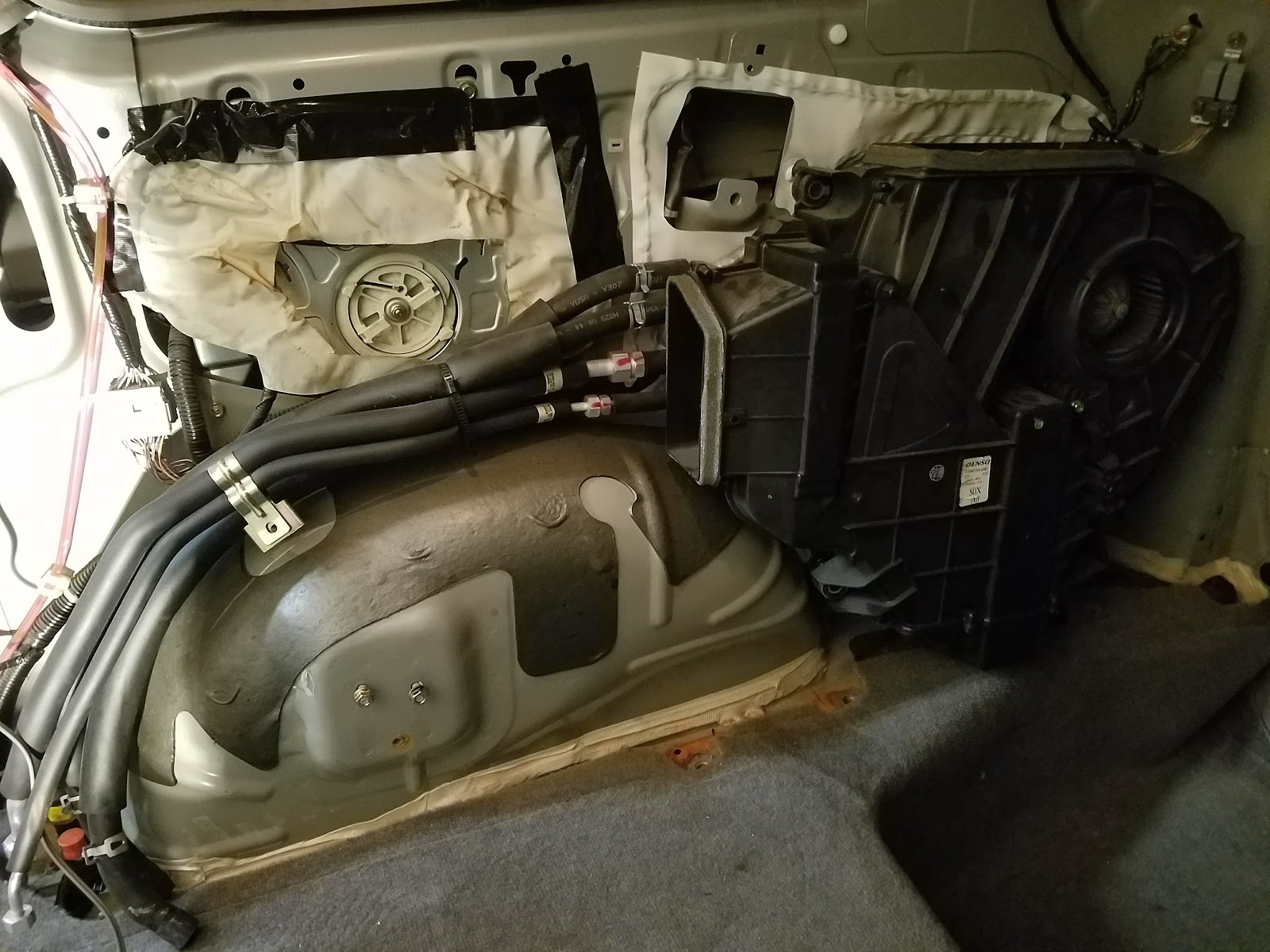 So this was a big surprise in the demo process. After removing all the rear trim I was left with this huge heater core tucked away in the back quarter panel. I consulted with my mechanic and we were able to remove it and cap off the lines.