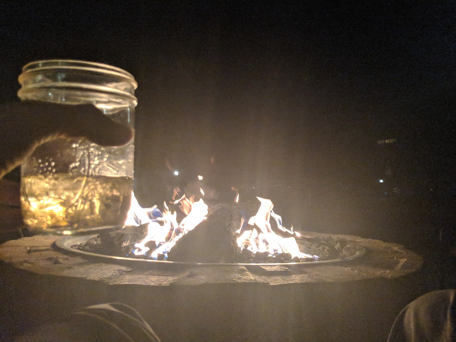 Whiskey’s by the fire pit in the Willow Wind RV Park.