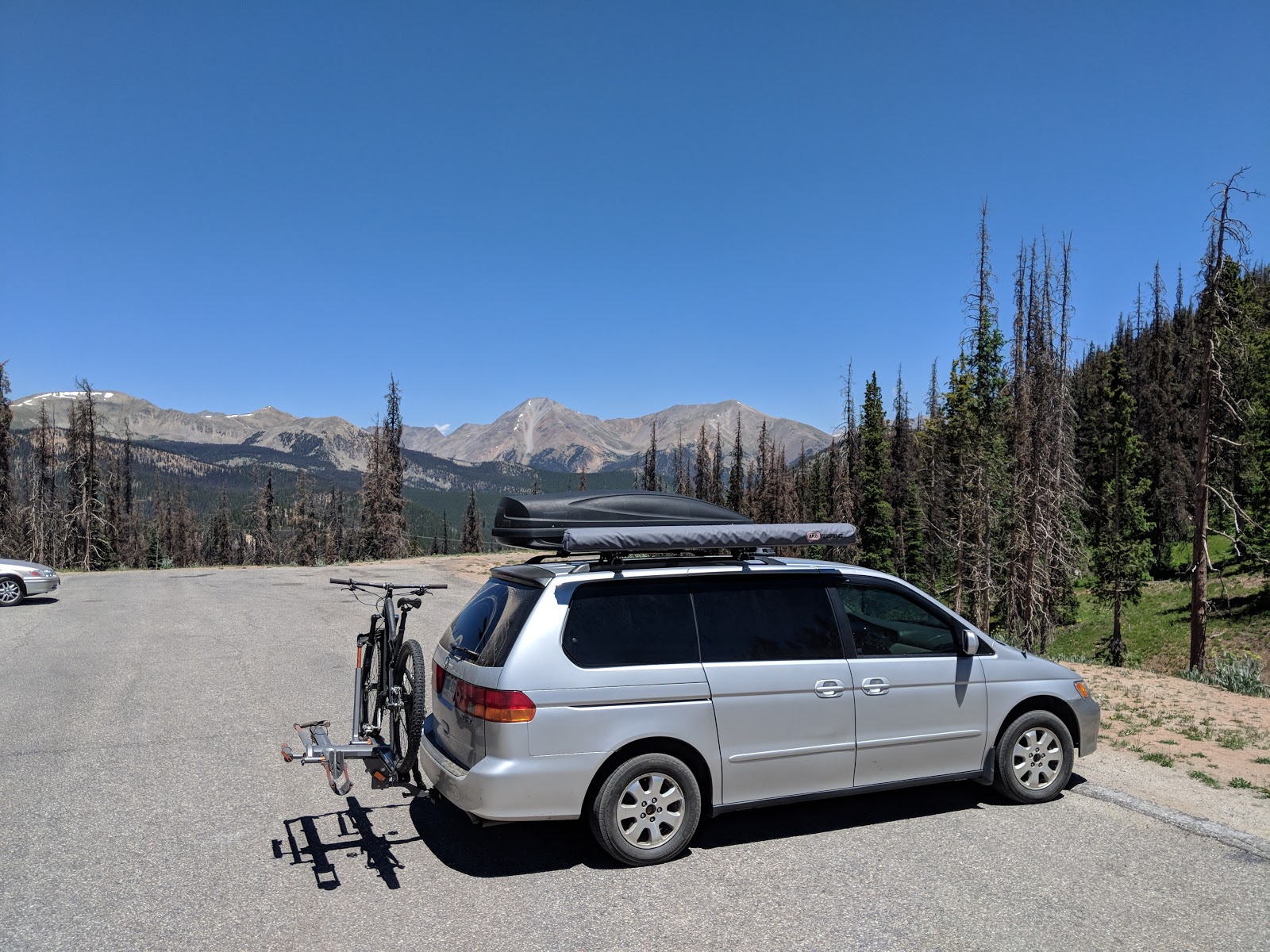 So after a month of housesitting in Colorado Springs it was time to get back on the road! After my tour in the desert I had planned a tour loosely following the Continental Divide from Colorado To Glacier National Park in Montana. Here is my van parked on the crest of the Continental Divide on highway 50 next to Monarch Ski Resort. It seems like every time I cross this pass I stop at the parking lot at the top and make lunch.