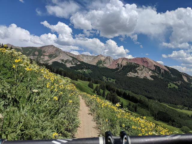 I was very impressed with the 401 trail. It lived up to the hype and could very well be one of the best mountain bike rides of all time. Zipping through the wildflowers at high speed with breathtaking alpine views of the surrounding peaks. I felt exhilarated after finishing this ride.