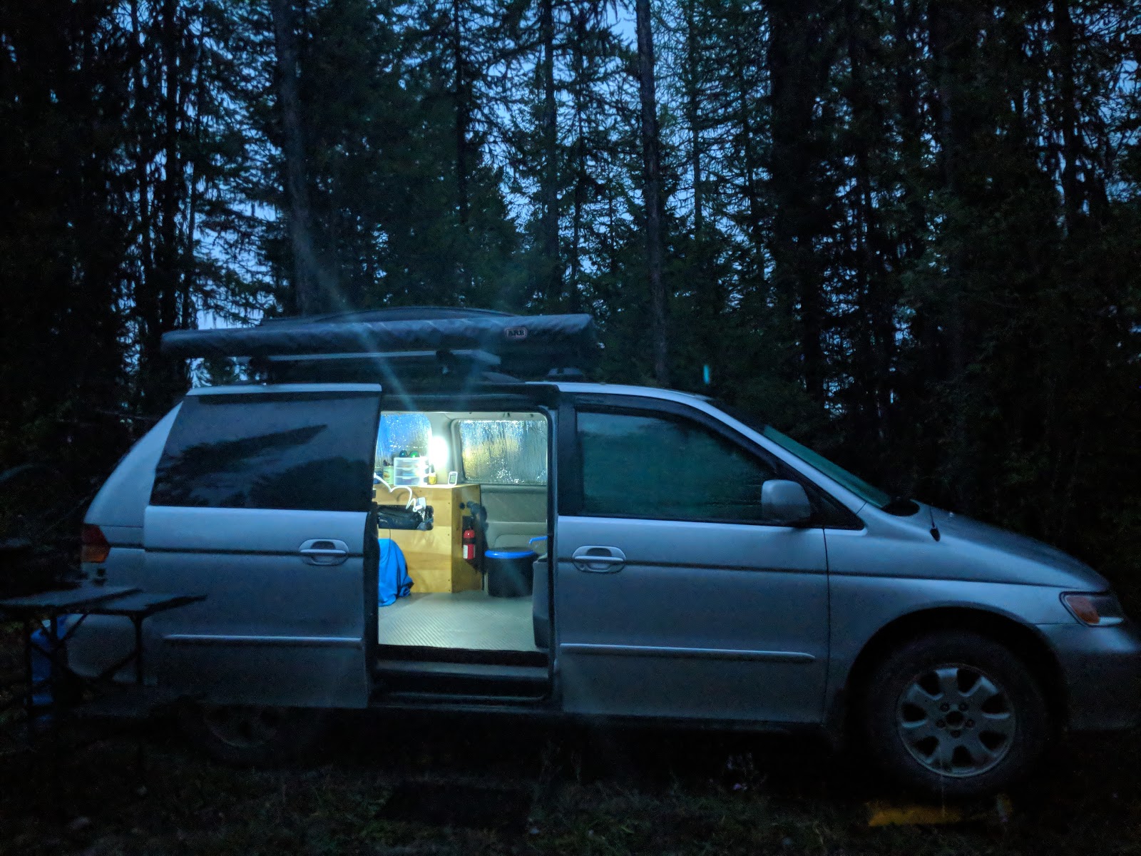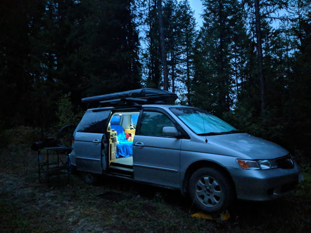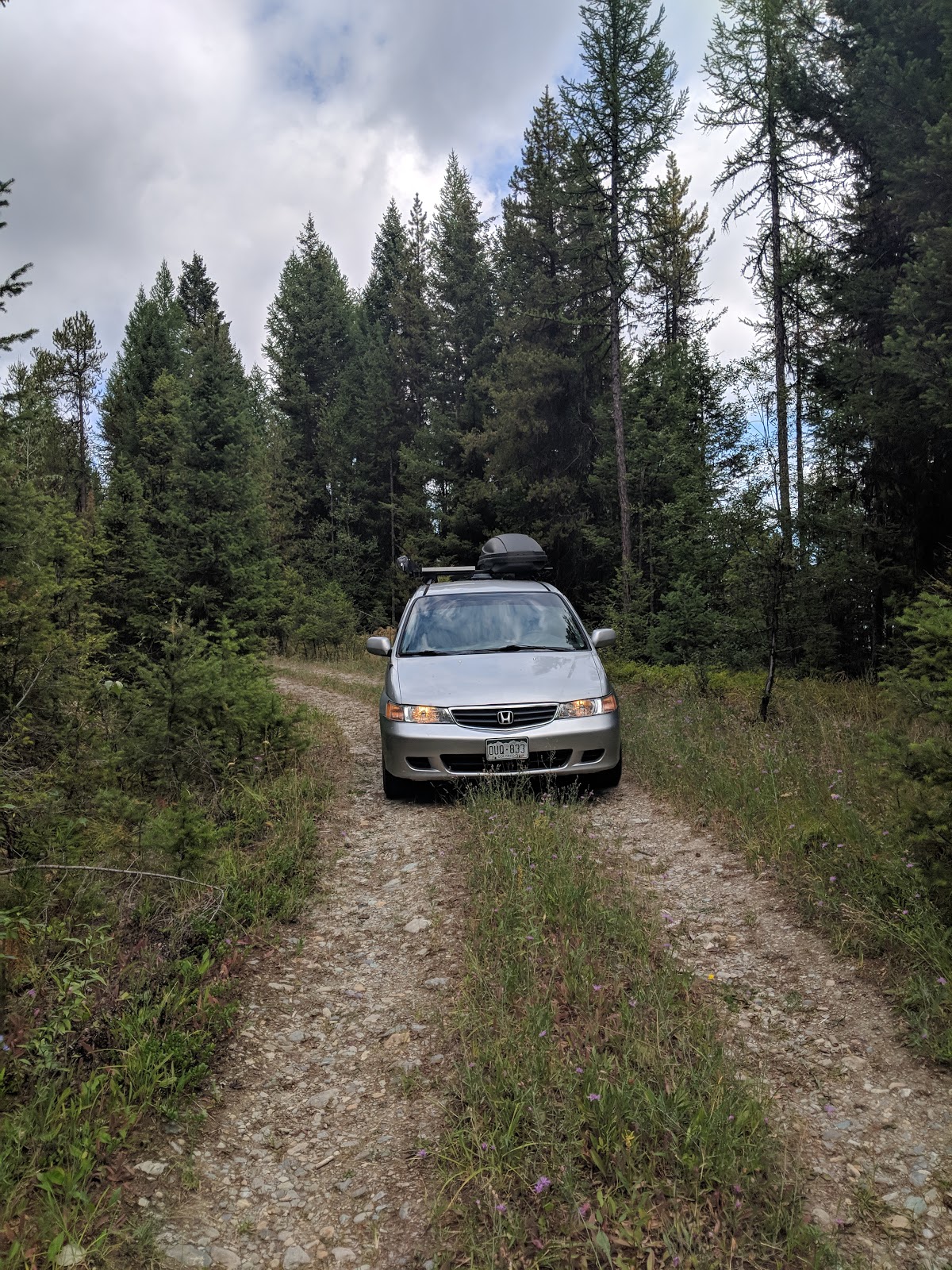 After searching around on the dirt roads for a while I settled on this small D shaped pull out off the side of one of the forest roads. It ended up working out great. There was hardly any traffic and it was nestled right next to the trail. The spot was nice and flat and ended up not having to level to van.