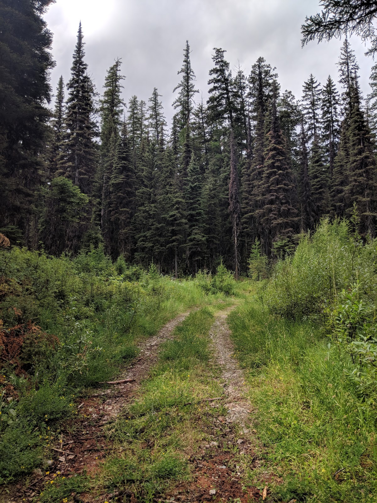 A crappy cold front moved thru and it rained for hours with a little snow mixed in. During the breaks in weather I would get out and do some hikes on the narrow double track that winds thru the Flathead National Forest.