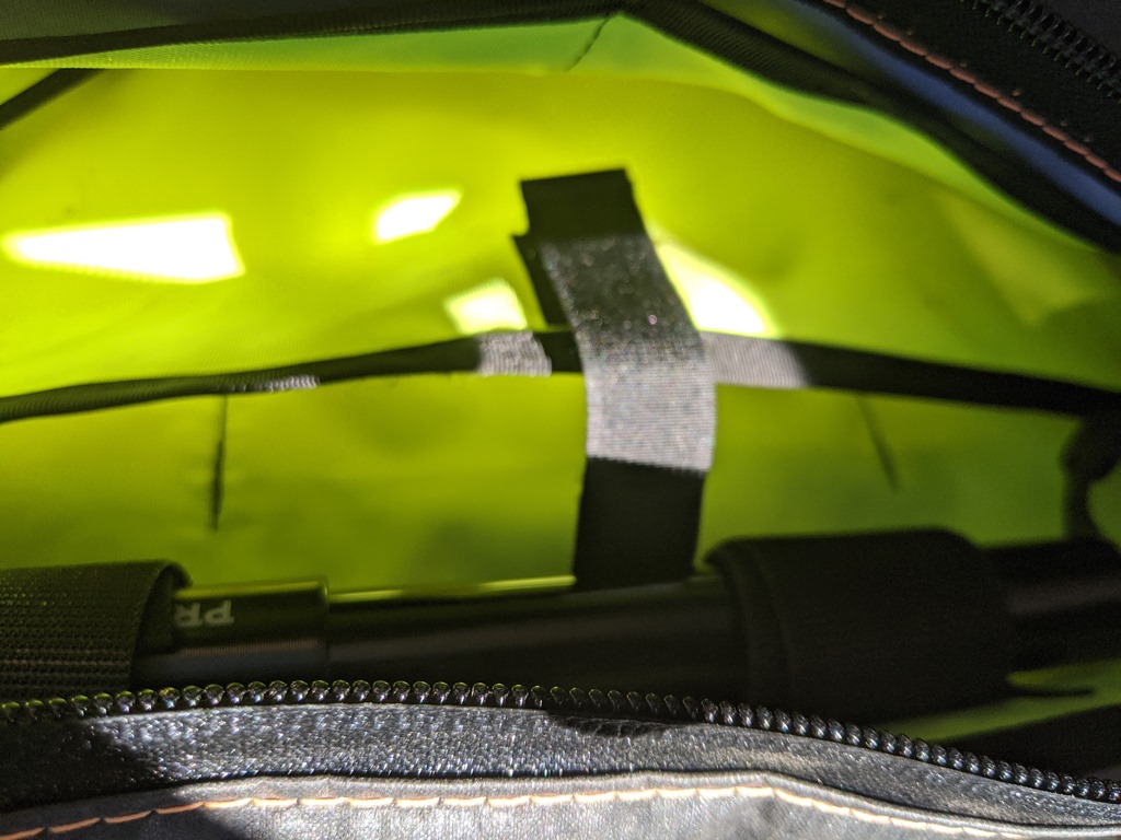 Another great innovation is a velcro divider inside the SnackPak that’s just the right size for energy bars in top compartment and my keys in the bottom. Like the FramePak, If needed the divider can be opened up for more room.