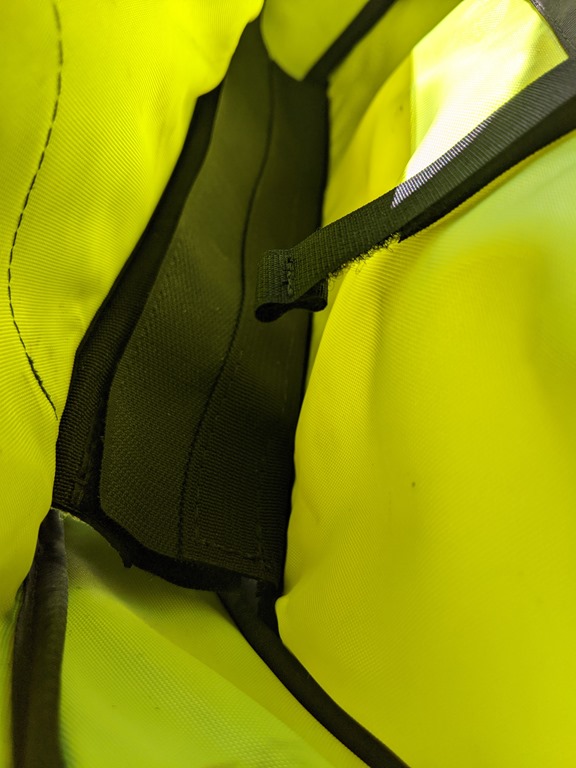 Peaking inside to see the velcro divider and Joe’s flawless stitching. I like having the option to have one large compartment or two smaller ones. And all the different sized internal pockets, so much storage! Its important to stay organized on trail and my FramePak really helps. Also the highlighter yellow interior seems to light up and make it easier to find what you are looking for. There are 3 pockets on the drive side and 4 pockets on the non drive side in addition to the main compartment allowing me to organize my gear just about anyway possible.