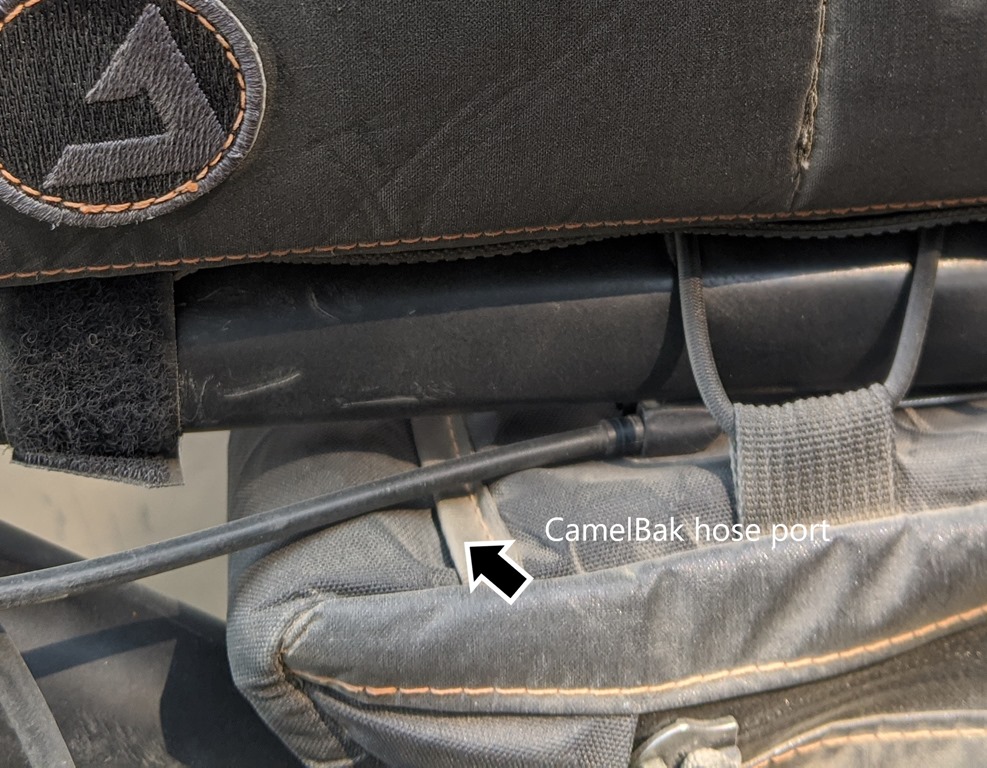One of the Innovative features on the FramePak is a port to run your CamelBak Hose or cables for your lighting system through.