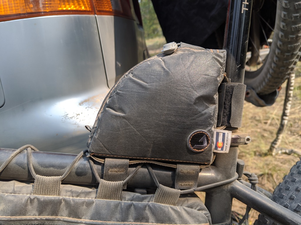 I have purchased 4 frame bags from Joe over the years. One for my hard tail bike in 2012, and a Surly Cross Check and Specialized Stumpjumper sometime in 2015. In July of this year I received the beautiful pack above made out of XPac Liteskin material. FramePaks need to be custom made and it starts by creating a template of your frame triangle. Joe can provide you instructions on how to create a template at home, or drop into his shop in Denver and he can make one for you while enjoying some friendly conversation about bikes and adventures!