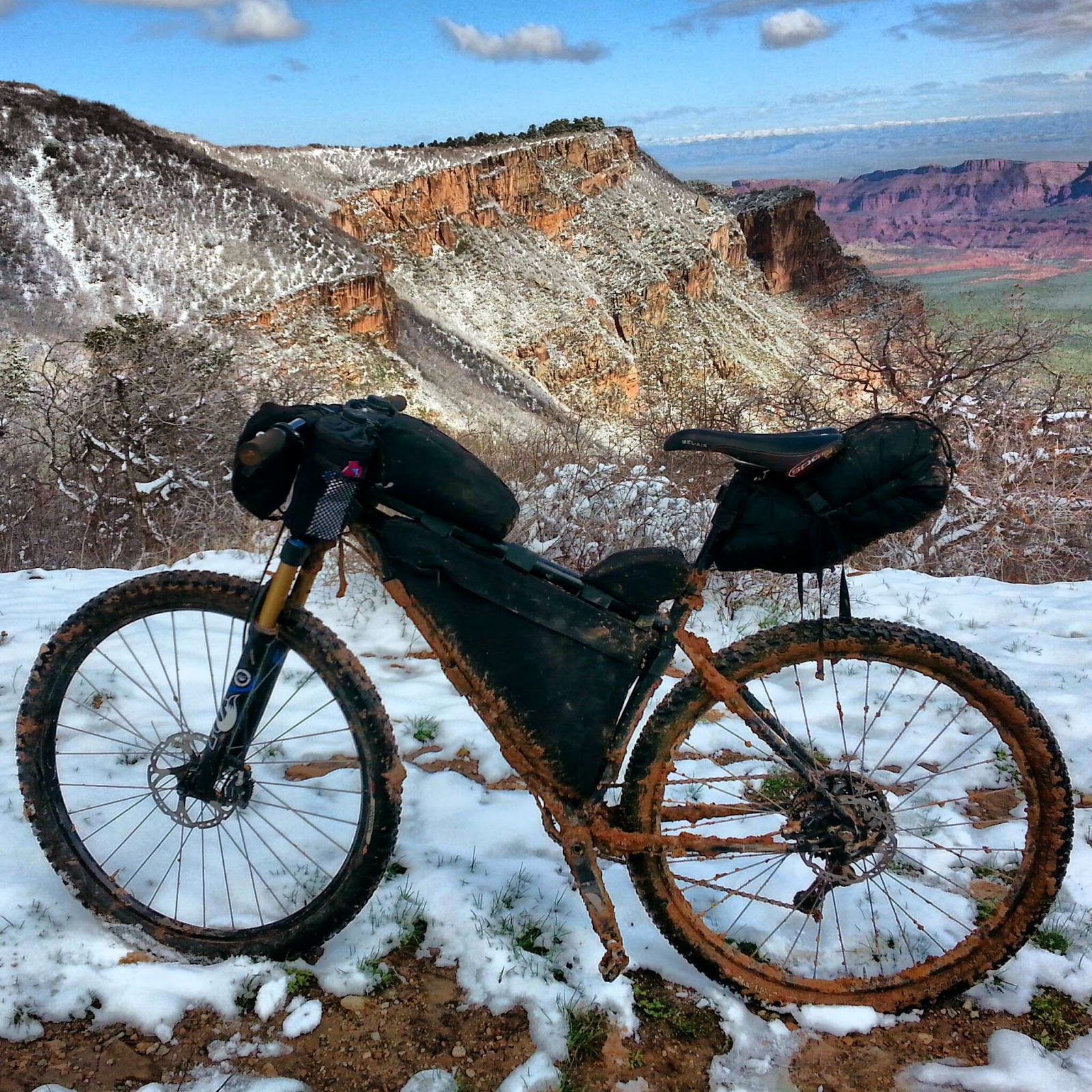 Here is my bike atop Sergeants Mesa. The Sergeants mesa section of the CT is widely regarded as the armpit of the whole trail which I found to be true. Basically there is about of 30 miles of trail that are shared by motorcycles. I appreciate my moto friends but motorcycles do a horrible job of chewing up the trail and leaving baby head sized rocks littered behind everywhere. You will see what I mean in an upcoming photo. I also remember a bloated dead cow up here that looked like it was about to explode. I didn’t take a picture of the god awful smelly rotting cow but sure do remember it!